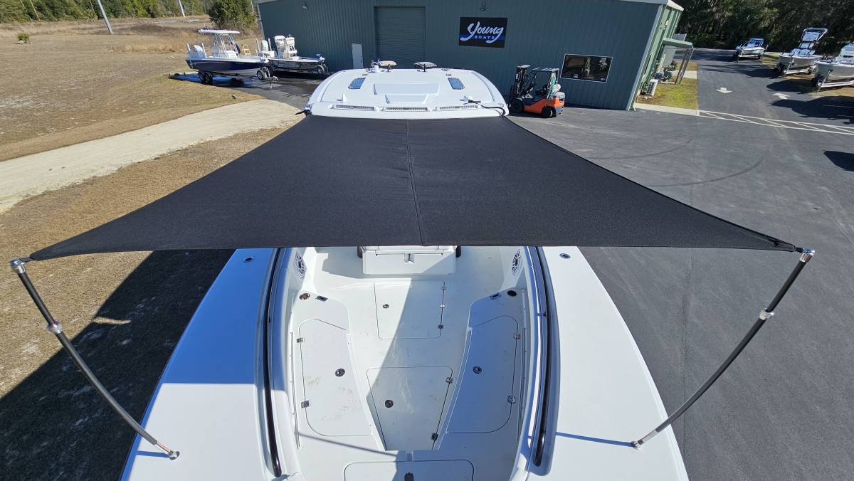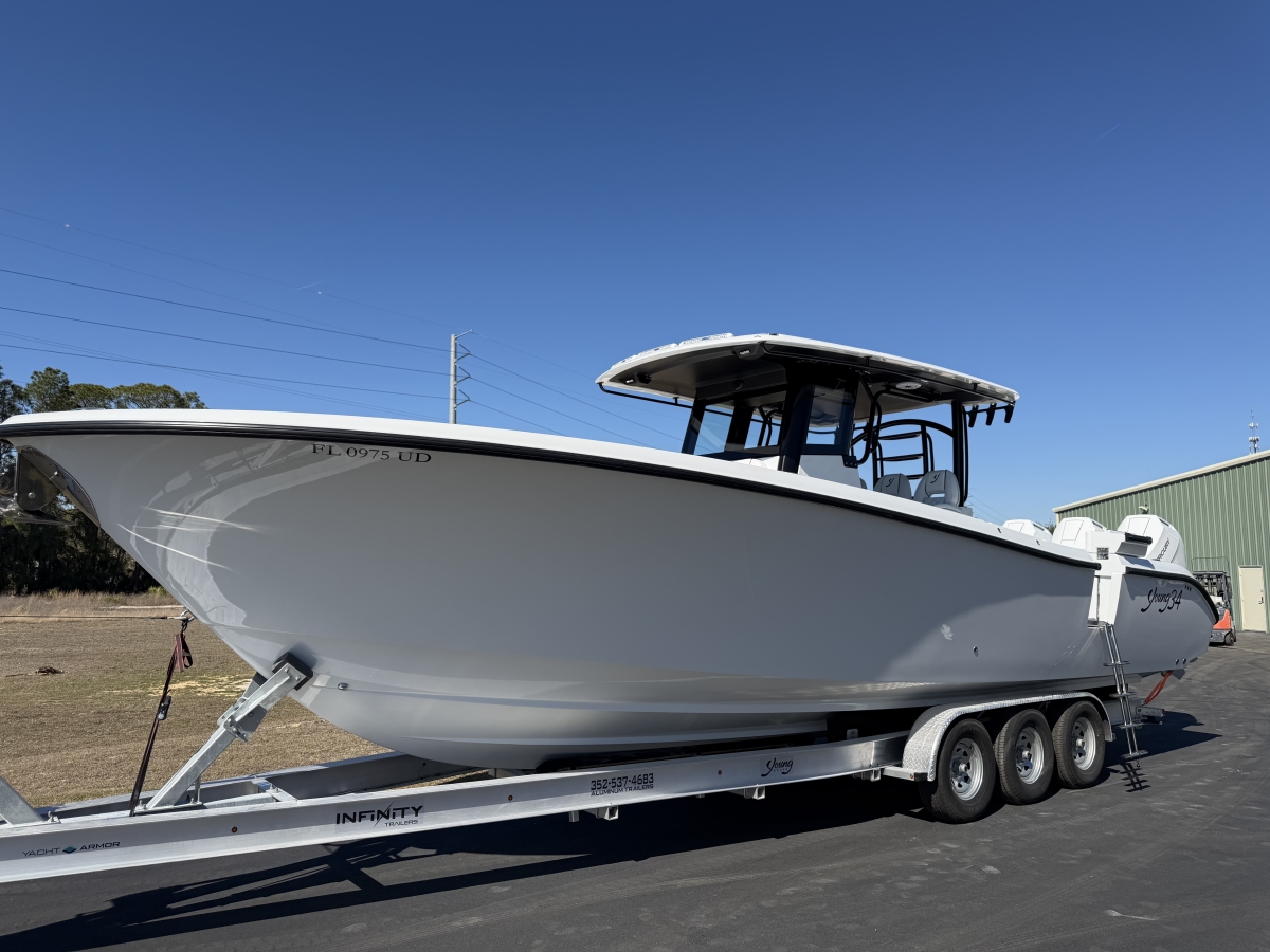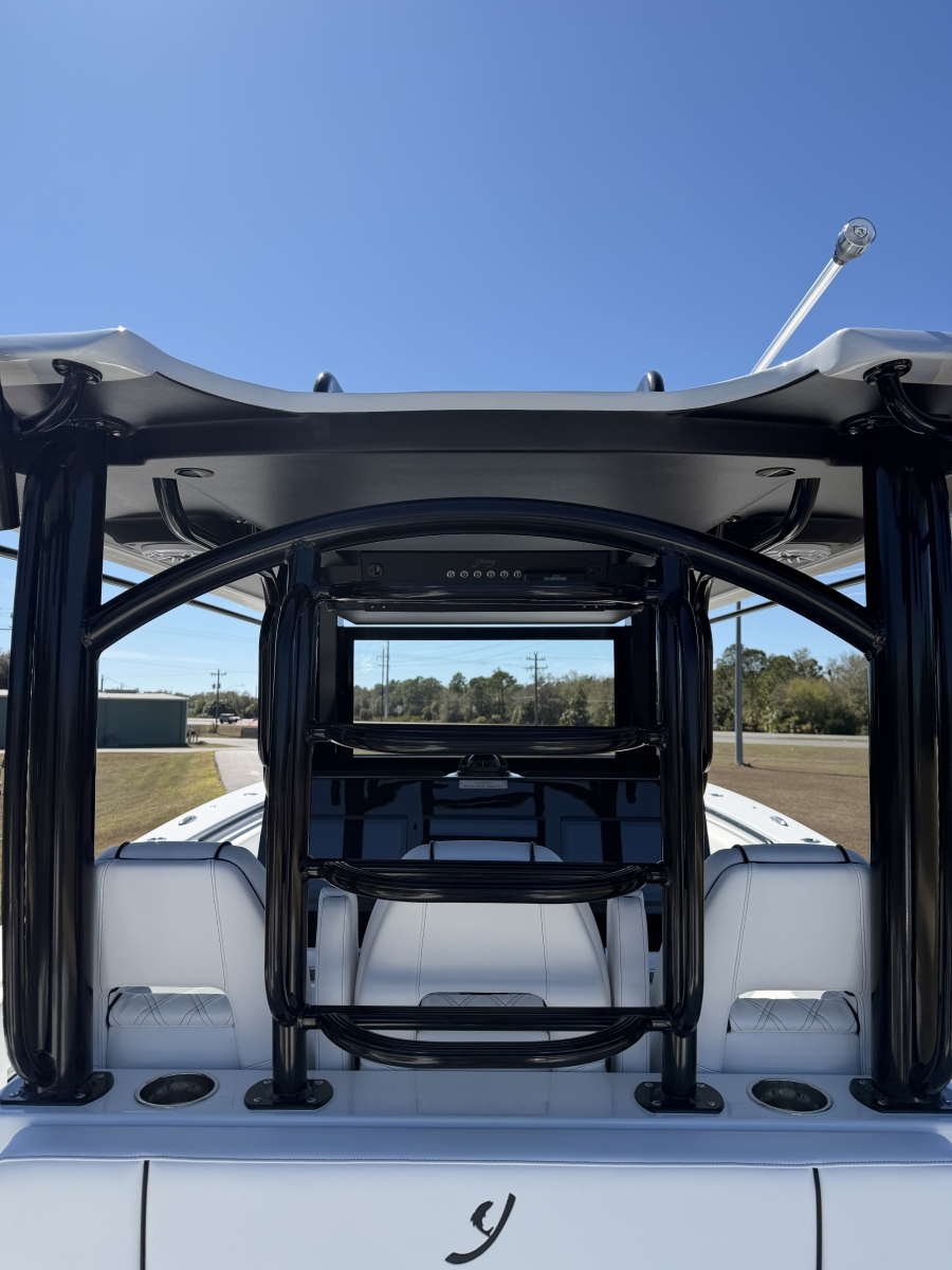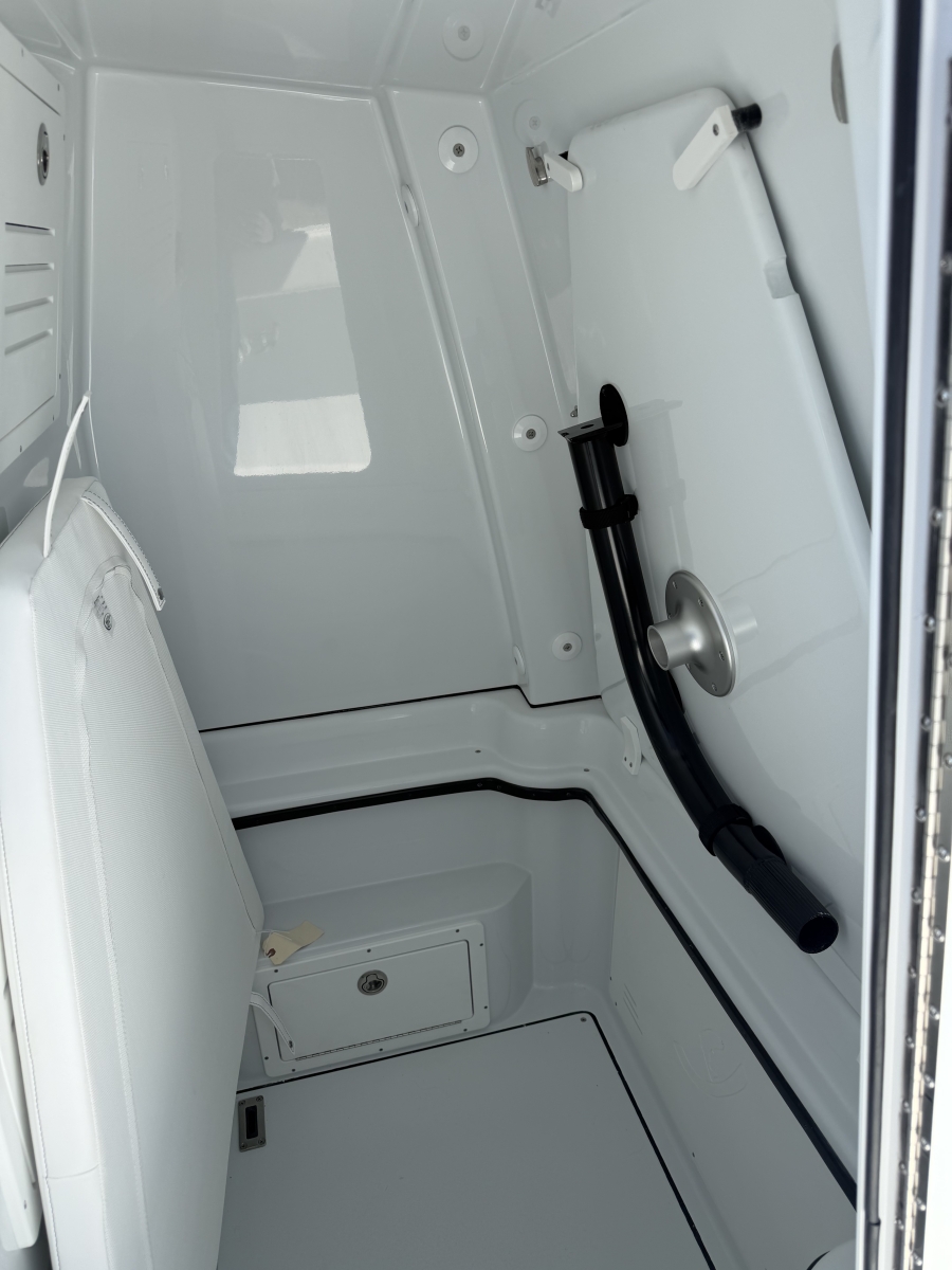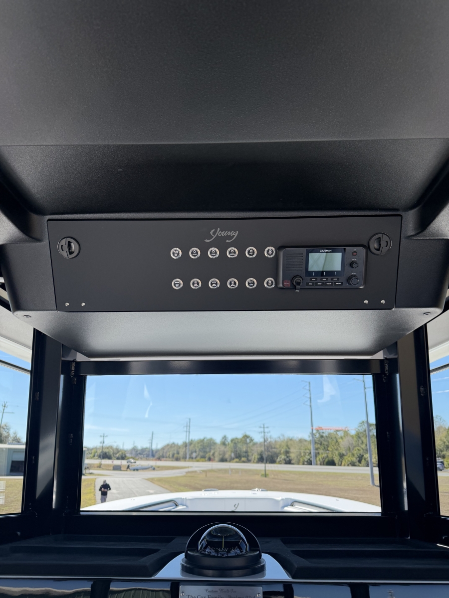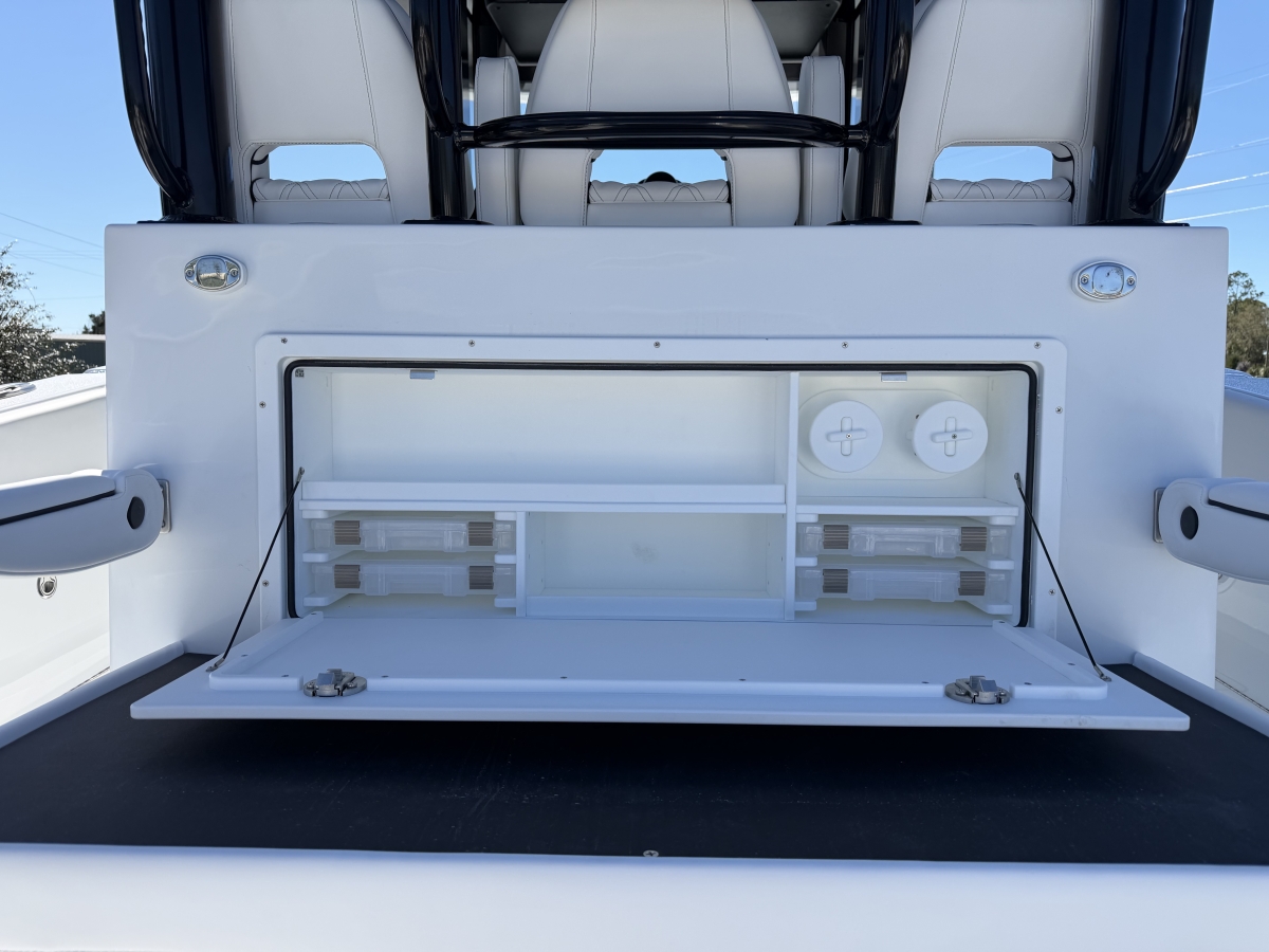 Triple-engine capable, all-composite cored hull engineered for strength, efficiency, and a smooth, dry ride. Three-piece, self-bailing construction with large fuel capacity for long-range trips.