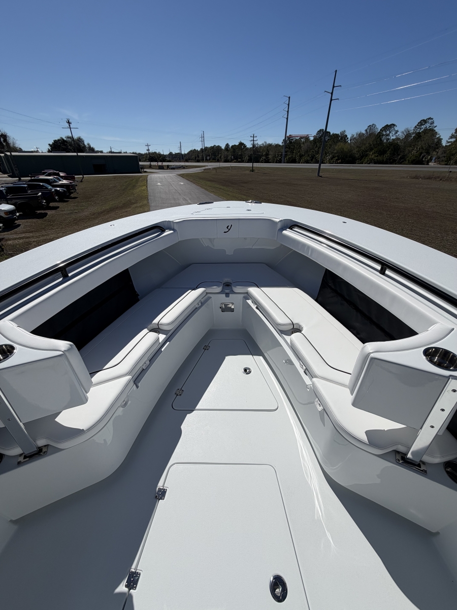 Offshore center console built for performance, comfort, and range. Multiple seating and layout options including forward seating or coffin box. Wide helm and console provide excellent ergonomics.