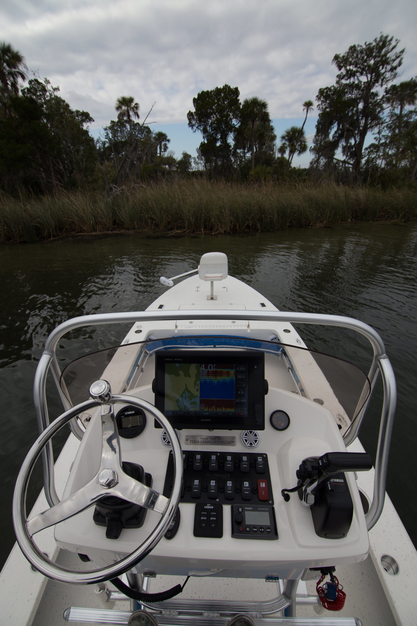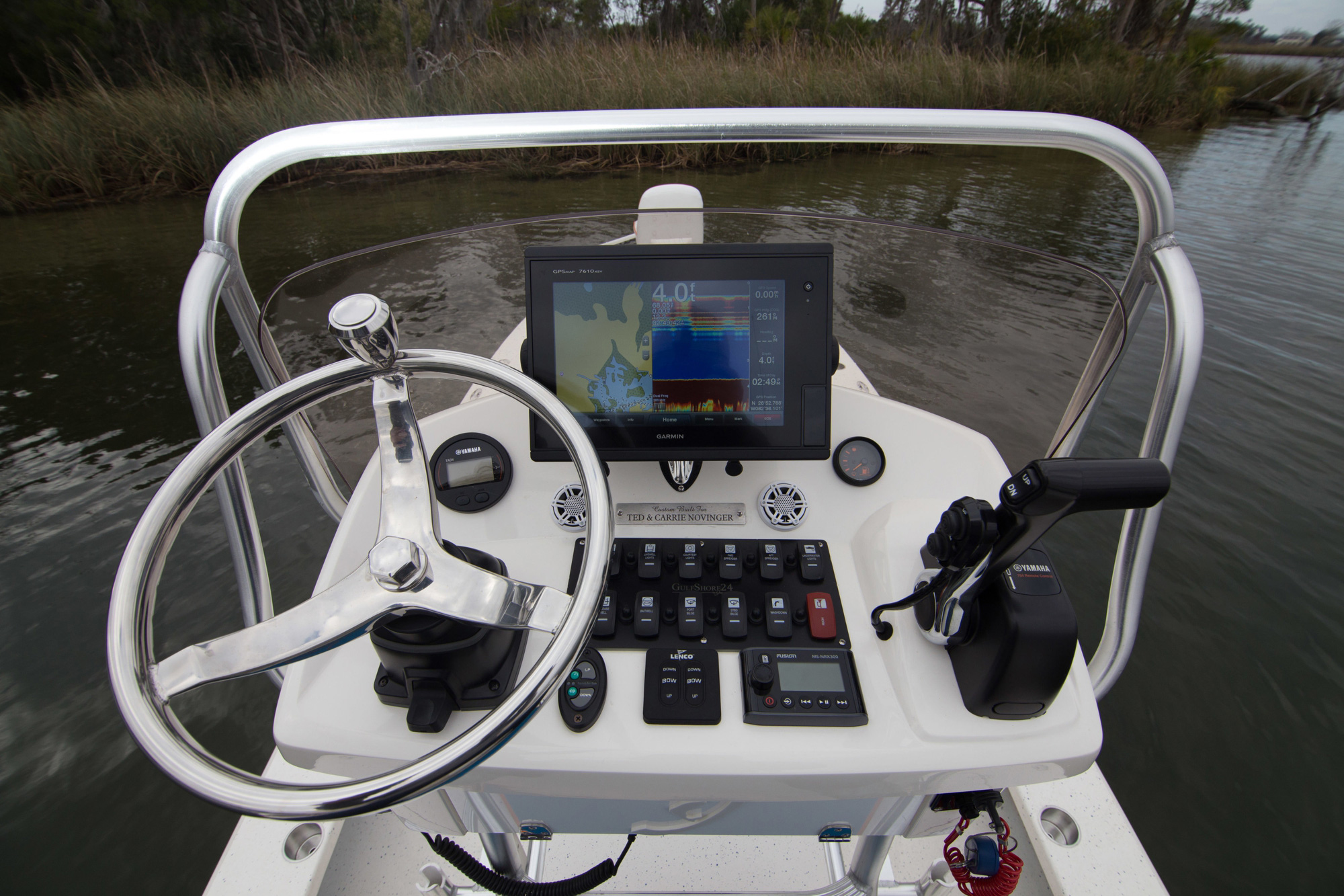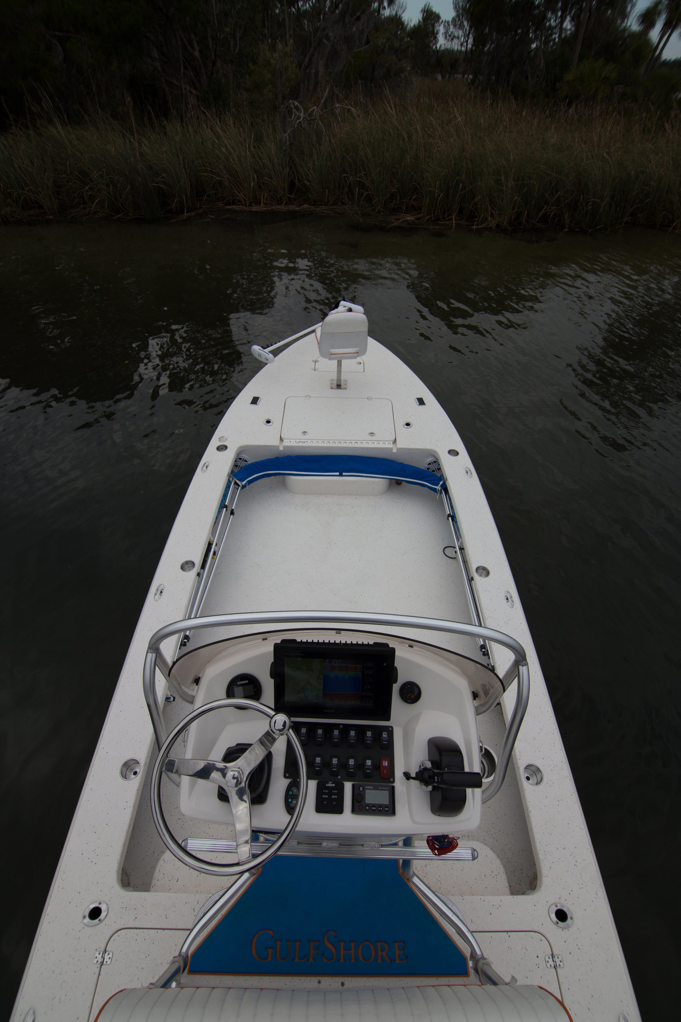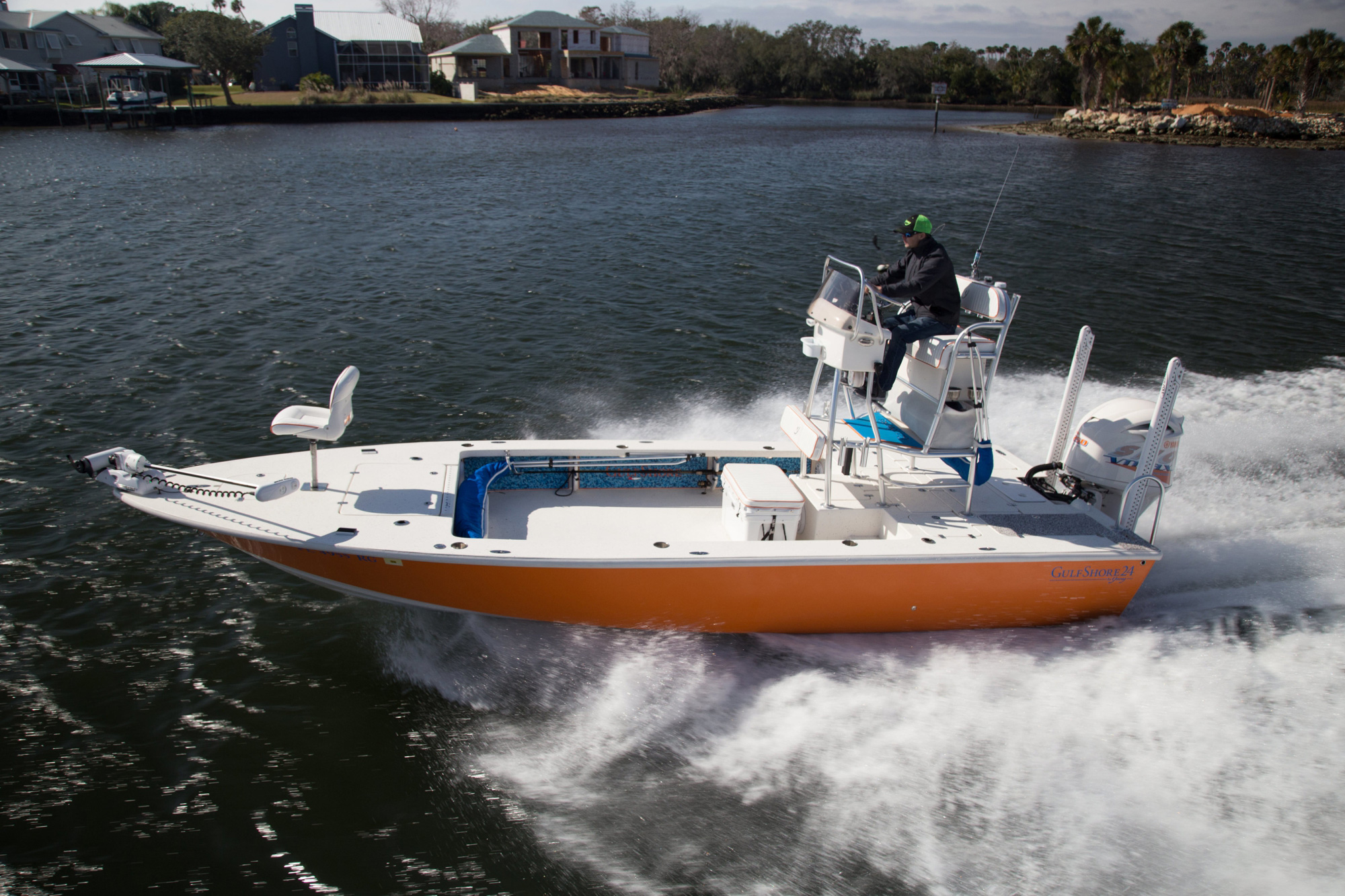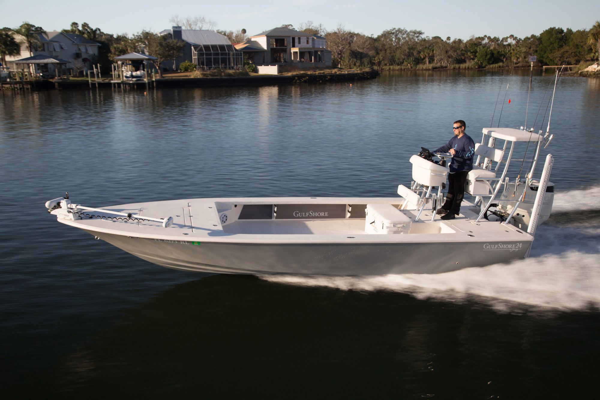 How can Young Boats improve on two already established winners — the GulfShore 20 and Young 24? By listening to guide and charter boat captains who wanted to fish shallow, venture further offshore and accommodate six fishermen — the GulfShore 24 was crafted! We have combined many of our most popular features and created the ULTIMATE GUIDE BOAT. The GS24 is 2 feet longer and 6 inches wider than the GulfShore 22, and has a wide beam which makes for plenty of open deck fishing space. Because of the new tunnel design, it fishes extremely shallow with a running draft less than 6 inches and also handles heavy chop very efficiently.